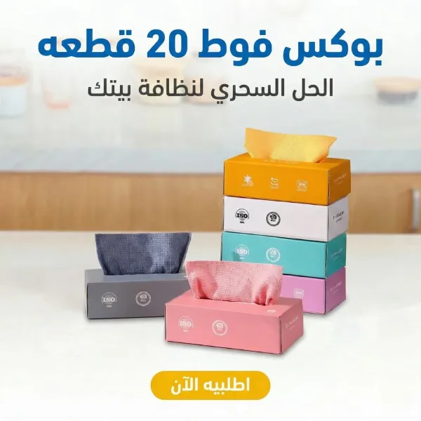 نظافة بيتك هي عنوانك، وعشان كدة لازم تكوني دايمًا جاهزة بأقوى الأدوات! بوكس فوط المايكروفايبر وصل، وهو الحل اللي هتستغني بيه عن كل فوط المطبخ والمناديل اللي بتخلص بسرعة. بوكس متكامل (20 قطعة) هيغير مفهوم التنضيف عندك تماماً.