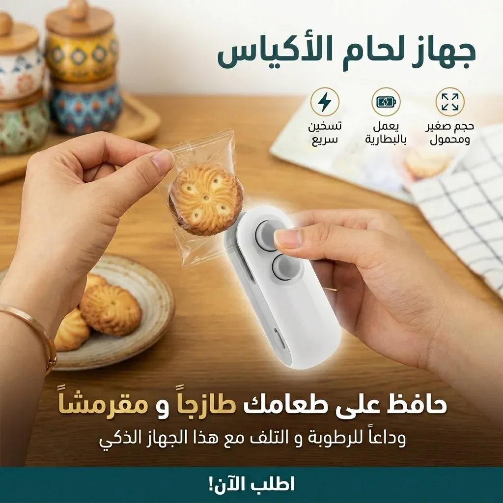 زهقت من أكياس الشيبسي والبسكويت اللي بتتفتح وتطرى وتبوظ بسرعة؟ زعلان على الأكل اللي بيترمي؟ الحل دلوقتي بقى في إيدك! مع ماكينة اللحام السحرية 2 في 1 ، هتقدر تقفل أي كيس وترجعه كأنه لسه مقفول وجديد في ثواني، وتودع هدر الأكل للأبد.